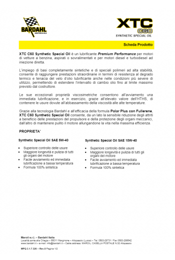 XTC c60 contiene in sé una presenza concentrata di tecnologia Bardahl (Polar Plus e Fullerene c60) in grado di offrire, a tutti coloro che ricercano prestazioni superiori legate ad un uso sportivo del proprio veicolo, elevate performance in termini di potenza, capacità anti-attrito e anti-usura.