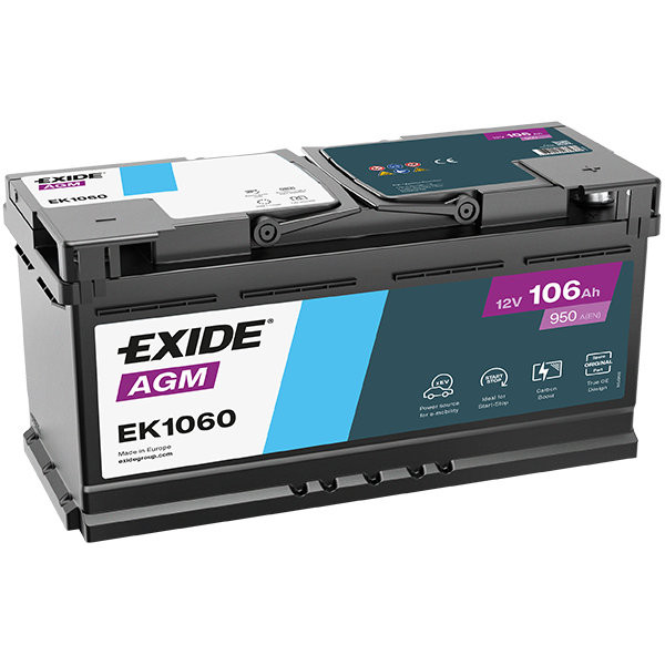 BATTERIA EXIDE 106 AH 950 A AGM MISURE 392X175X190 POLARITA' DX